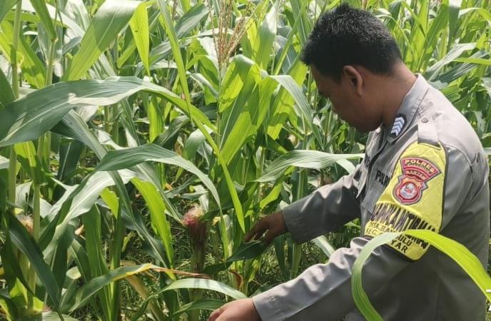 Anggota Polsek Anyar Cek Lahan Tanaman Jagung di Desa Binaan