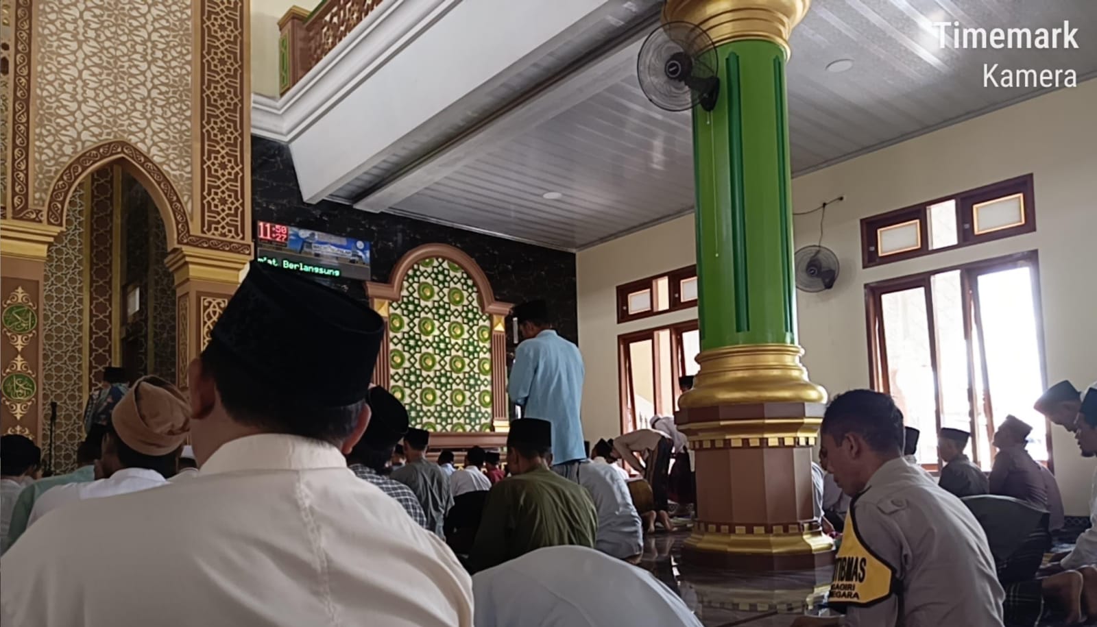 Anggota Bhabinkamtibmas Sholat Jumat Berjamaah, Sekaligus Ingatkan Jamaah Tentang Kamtibmas