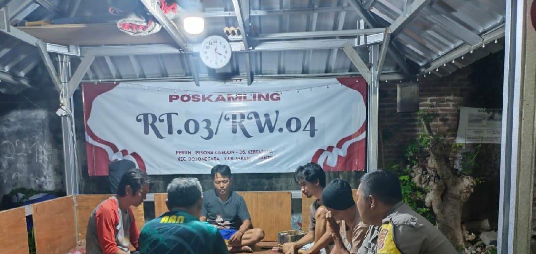 Cilegon ~ Dalam upaya menjaga situasi kamtibmas tetap kondusif,Bhabinkamtibmas Polsek Bojonegara Polres Cilegon Polda Banten, Bripka Leo Andika Bhabinkamtibmas Desa Bojonegara melaksanakan kegiatan kontrol dan pemantauan ronda malam,di sejumlah pos ronda warga yang berada di wilayah binaannya, Sabtu (08/11/2025).