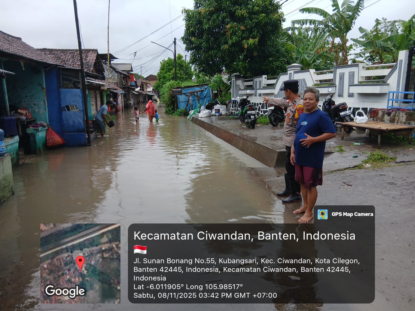 Kapolres Cilegon Polda Banten AKBP Dr. Martua Raja Taripar Laut Silitonga Melalui Kapolsek Ciwandan Polres Cilegon KOMPOL Andi Suherman Mengatakan bahwa Personil Bhabinkamtibmas Kelurahan Kubangsari Polsek Ciwandan Polres Cilegon AIPDA Asep Karyudin melakukan monitoring rumah warga paska hujan yang menyebabkan rumah warga tergenang air di lingkungan Cigading pasar sekitar 63 rumah.
