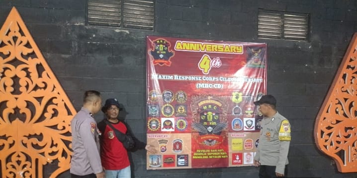 -POLRES CILEGON–Polda Banten. Bripka Agustoni, Babinkamtibmas Kelurahan Kotabumi, Kecamatan Purwakarta, Kota Cilegon, menghadiri dan melakukan monitoring kegiatan Anniversary ke-4 Maxim Respon Corp Cilegon Bersatu (MRC.CD) yang dilaksanakan di Gedung Kesenian YPWKS, Komplek KS. Kehadiran Babinkamtibmas ini bertujuan untuk memastikan kegiatan berjalan aman dan tertib.