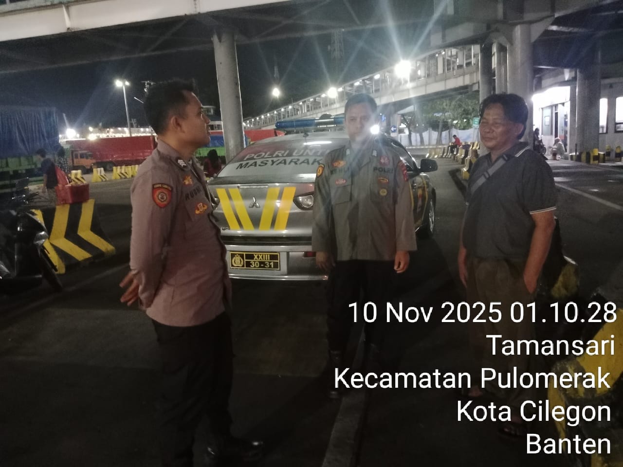 Cilegon - Personil Polsek Kskp Merak Polres Cilegon melaksanakan patroli di kawasan pelabuhan merak memberikan rasa aman dan damai, Senin (10/11/2025)