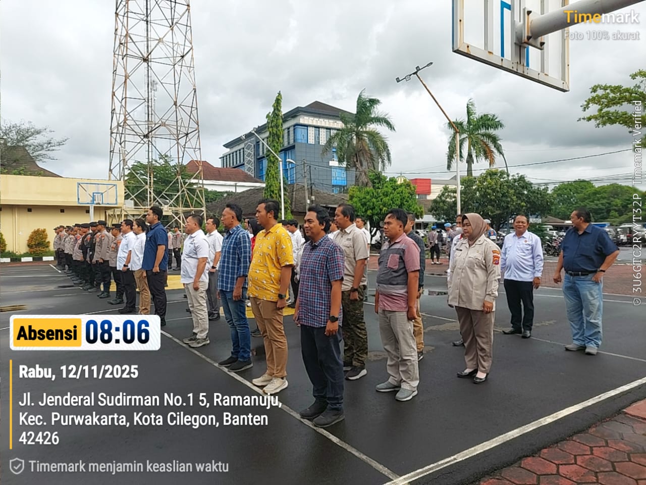 Cilegon, Polres Cilegon ,Polda Banten,  Personil Polres Cilegon Melaksanaan Apel pagi, merupakan kegiatan rutin setiap harinya terkait situasi di wilayah hukum Polres Cilegon Rabu (12/11/2025).
