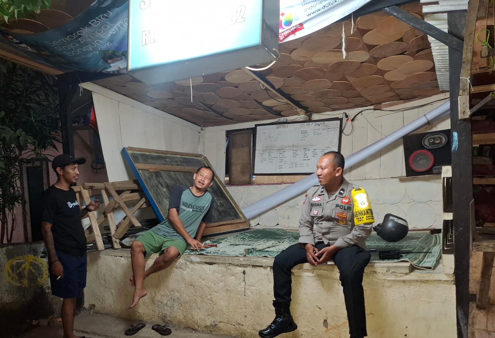 Cilegon - Personel Bhabinkamtibmas Polsek Anyar Polres Cilegon Polda Banten Aipda Isvana melaksanakan sambang Ronda Siskamling Dalam rangka menjaga Harkamtibmas dan Sebagai bentuk mendukung Program Quick Wins Presisi Polri, Rabu (12/10).