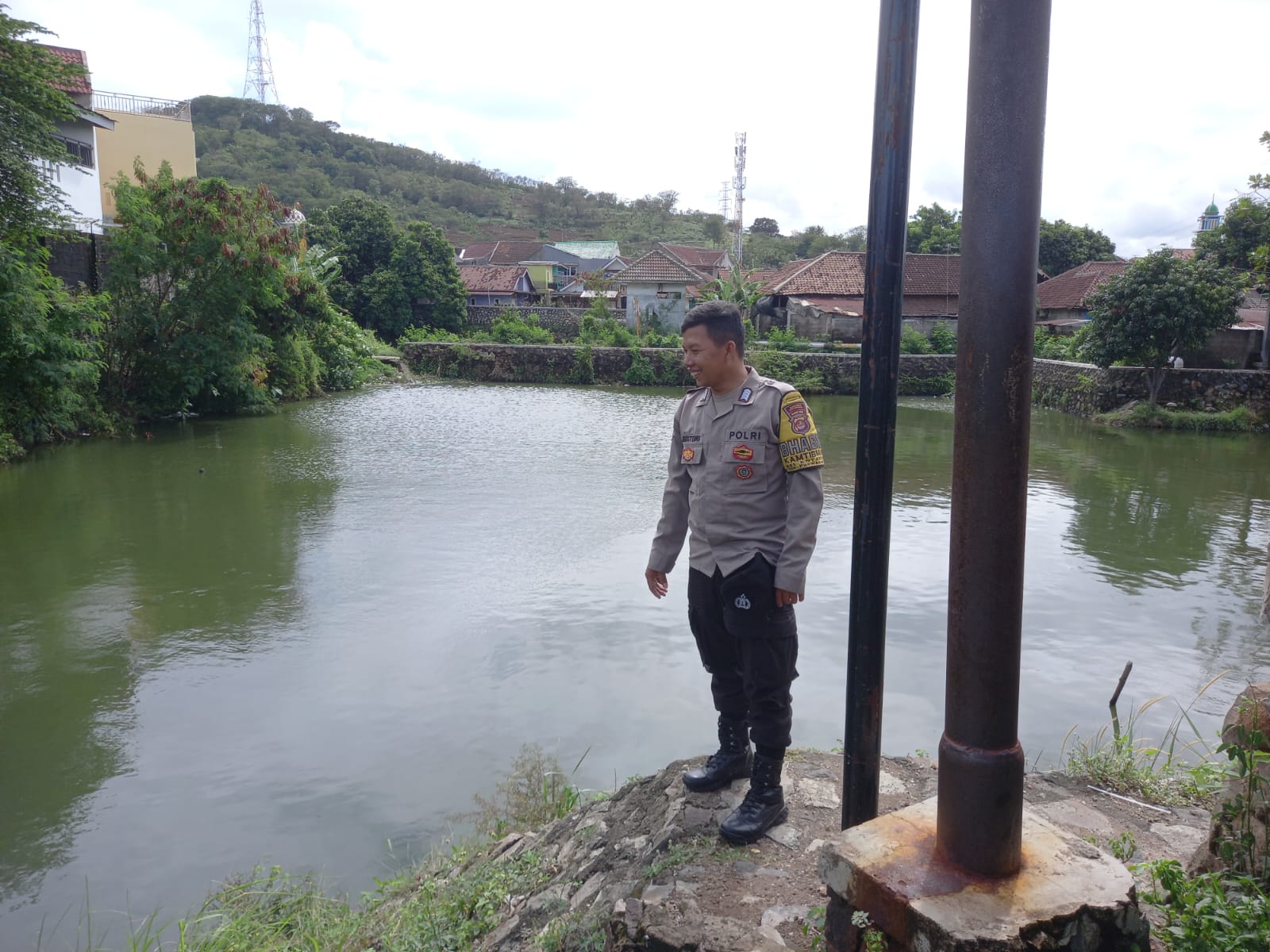 -POLRES CILEGON-Polda Banten. Bhabinkamtibmas Bripka Agustoni melaksanakan monitoring kondisi waduk di wilayah Kelurahan Kotabumi, Kecamatan Purwakarta, Kota Cilegon, pasca hujan deras yang melanda. Kegiatan ini dilakukan di lingkungan Serdag, Penyairan untuk memastikan keamanan dan kondisi waduk tetap stabil.Rabu.(12-11-2025).