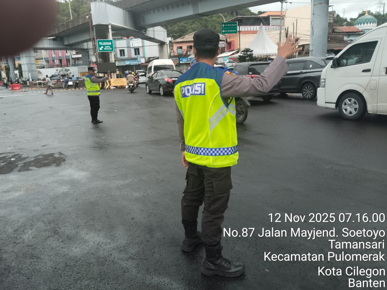 Personel KSKP Merak Polres Cilegon Laksanakan Pengaturan Kendaraan di Pelabuhan Merak
