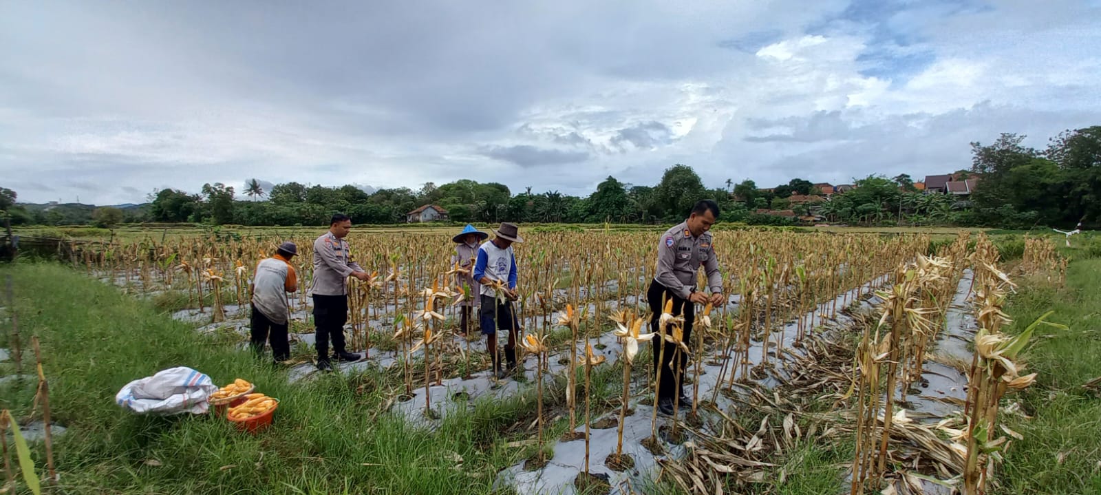 Cilegon - Polsek Ciwandan Polres Cilegon Polda Banten mendukung kegiatan panen jagung Hibrida hasil penanaman Poktan Blumbang Tani di Kelurahan Tegal Ratu, Kecamatan Ciwandan, Kota Cilegon, Kamis (13/11/2025)