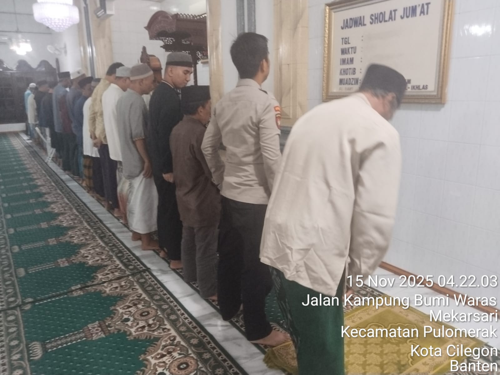 Cilegon - Personil Kskp Merak Polres Cilegon Polda Banten menggelar kegiatan Pembinaan Rohani dengan shalat subuh keliling di Masjid Yang ada Di Daerah hukum Polsek Kp Merak Polres Cilegon Polda Banten, Sabtu (15/11/2025).