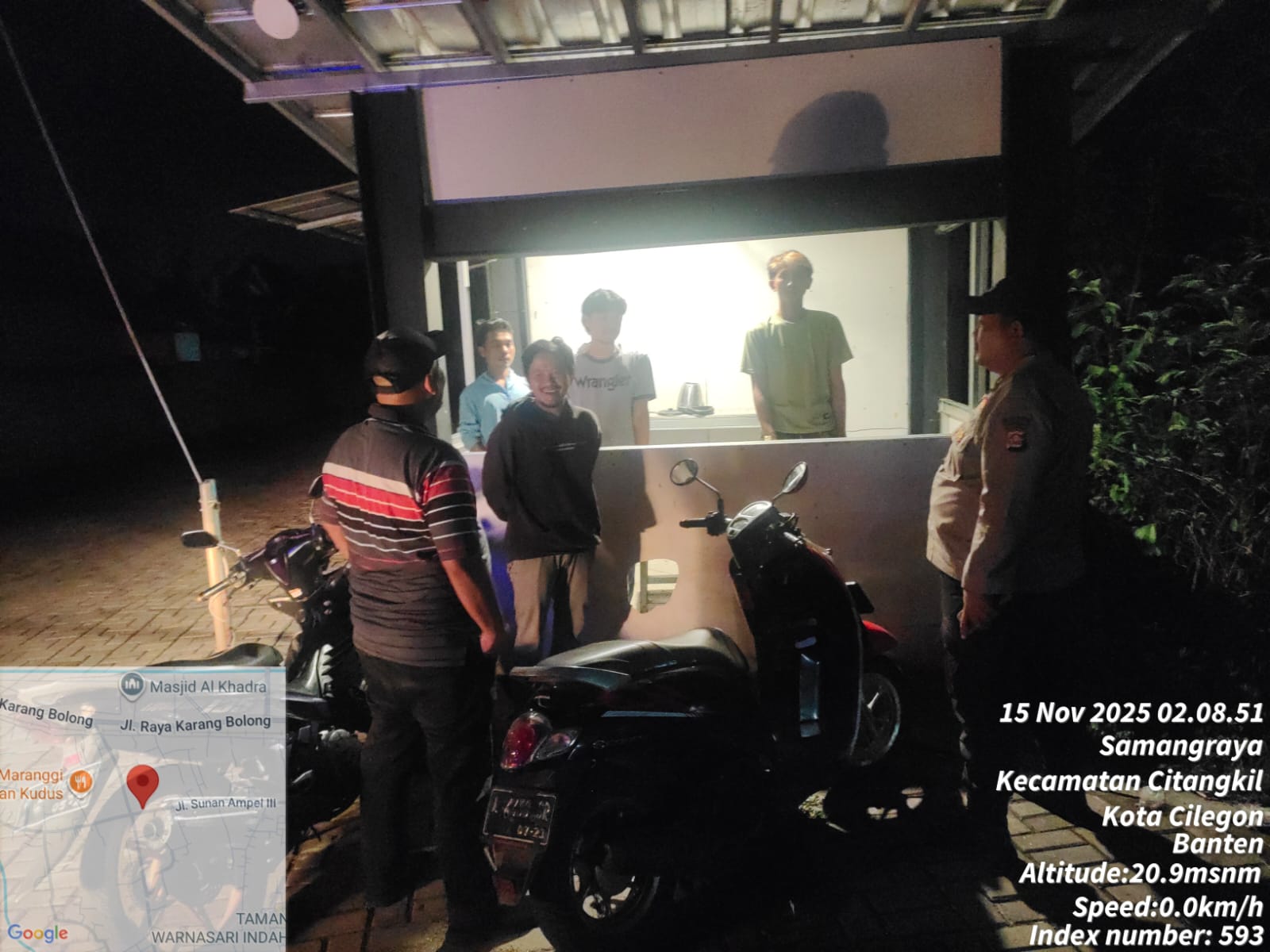 Cilegon - Personil Polsek Ciwandan Polres Cilegon Polda Banten Selalu Melaksanaan Kegiatan KRYD (Kegiatan Rutin Yang Ditingkatkan) Patroli Rutin malam hari di daerah hukum Polsek Ciwandan Guna Persempit Ruang Pelaku Tindak Kejahatan, Sabtu (15/11/2025).