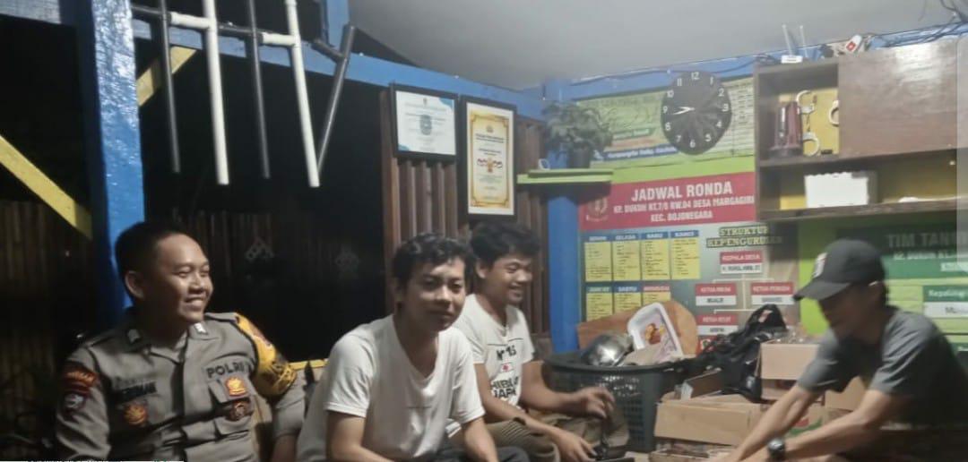 Cilegon ~ Dalam upaya menjaga situasi kamtibmas tetap kondusif,Bhabinkamtibmas Polsek Bojonegara Polres Cilegon Polda Banten,  Bhabinkamtibmas Desa Margagiri melaksanakan kegiatan kontrol dan pemantauan ronda malam,di sejumlah pos ronda warga yang berada di wilayah binaannya, Minggu (16/11/2025).