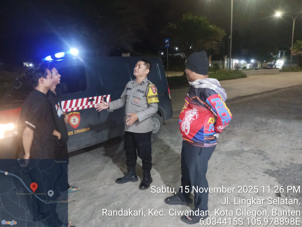 Cilegon - Polres Cilegon melalui Polsek Ciwandan melaksanakan kegiatan Blue Light Patrol. Kegiatan ini bertujuan untuk mengantisipasi gangguan kamtibmas, premanisme, C3 (curat, curas, dan curanmor), balap liar, gang motor, dan perkelahian remaja didaerah hukum Polsek Ciwandan, Minggu (16/11/2025).