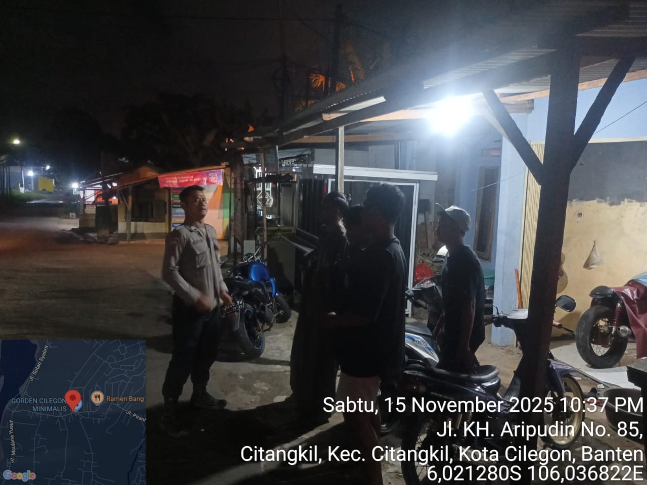 Personil Polsek Ciwandan Polres Cilegon Patroli Malam Rutin Dalam Pencegahan Segala Bentuk Aksi Kriminalitas.