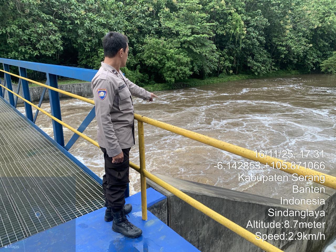 Piket Polsek Cinangka secara rutin melakukan pengecekan kondisi sungai dan berkoordinasi dengan pihak terkait untuk memantau perkembangan debit air. Pemantauan ini juga melibatkan partisipasi aktif dari masyarakat setempat.