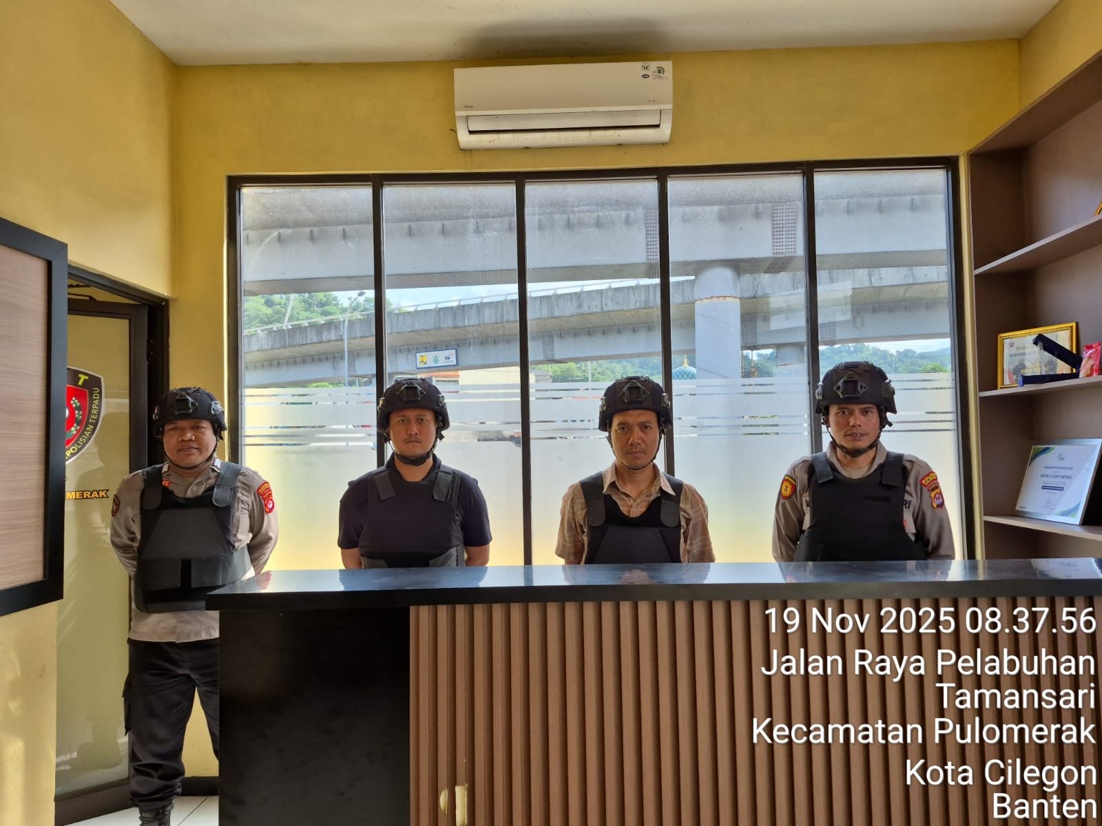 Cilegon - Personel piket jaga Polsek Kskp Merak Polres Cilgon Polda Banten melaksanakan siaga 1 Polsek pelaksanaan Sispam Mako oleh piket siaga dipimpin oleh Kspk Polsek Kskpy Merak Polres Cilegon Polda Banten, Rabu (19/11/2025).