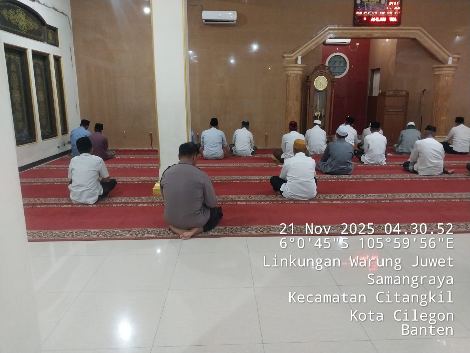 Cilegon - Dalam Rangka Implementasi Program Subuh Keliling Kapolda Banten Dan Kapolres Cilegon Polda Banten Bhabinkamtibmas Polsek Ciwandan Polres Cilegon Polda Banten melakukan Sholat Subuh Berjama’ah bersama warga masyarakat, Jum'at (21/11/2025).