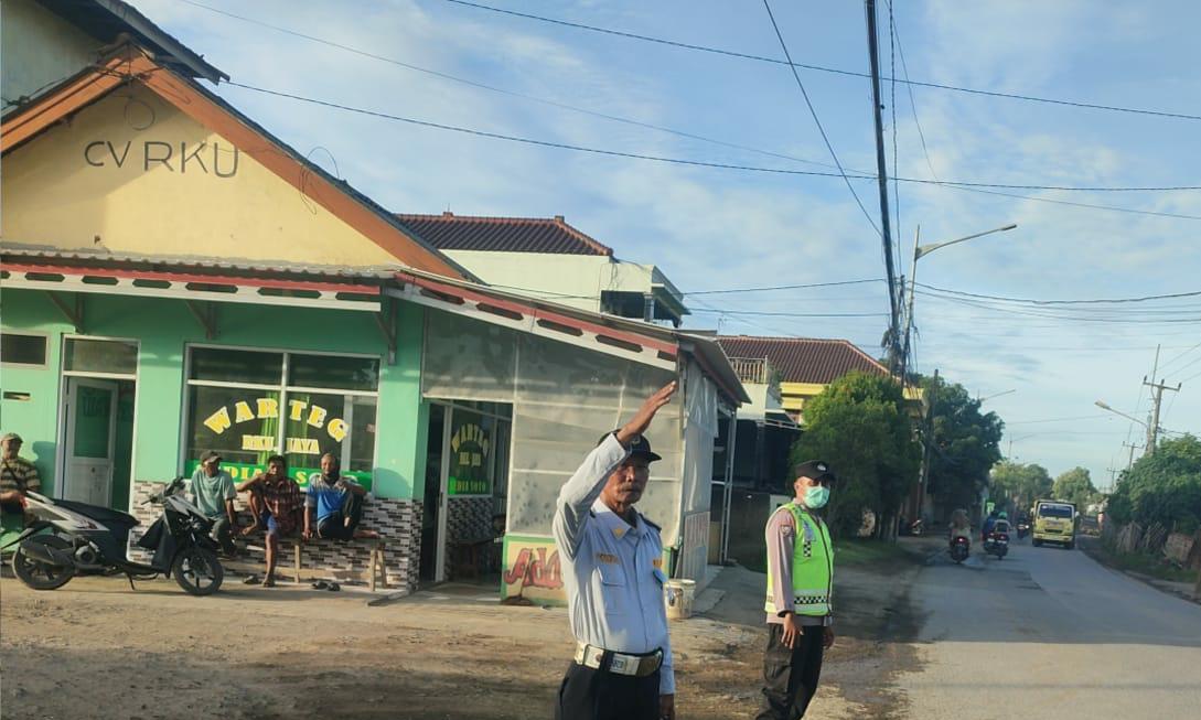 Strong Poin Sore, Personel Polsek Bojonegara dan Dishub Laksanakan Gatur lalu lintas Di Jalan Raya PT RKU Bojonegara