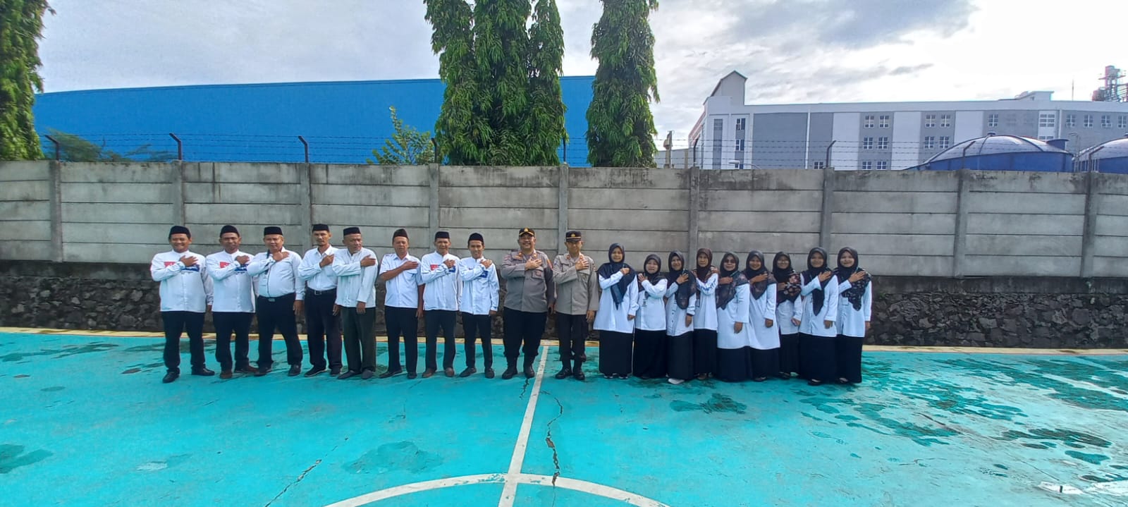 Cilegon – Bhabinkamtibmas Polsek Ciwandan Dampingi Kasat Binmas Polres Cilegon Polda Banten IPTU Muhyidin Pimpin Upacara Dan Menyambangi MTS & MA Dikelurahan Tegalratu Kecamatan Ciwandan, Menyampaikan Pesan-pesan Kamtibmas Dan Memberikan Imbauan, Senin (24/11/2025).