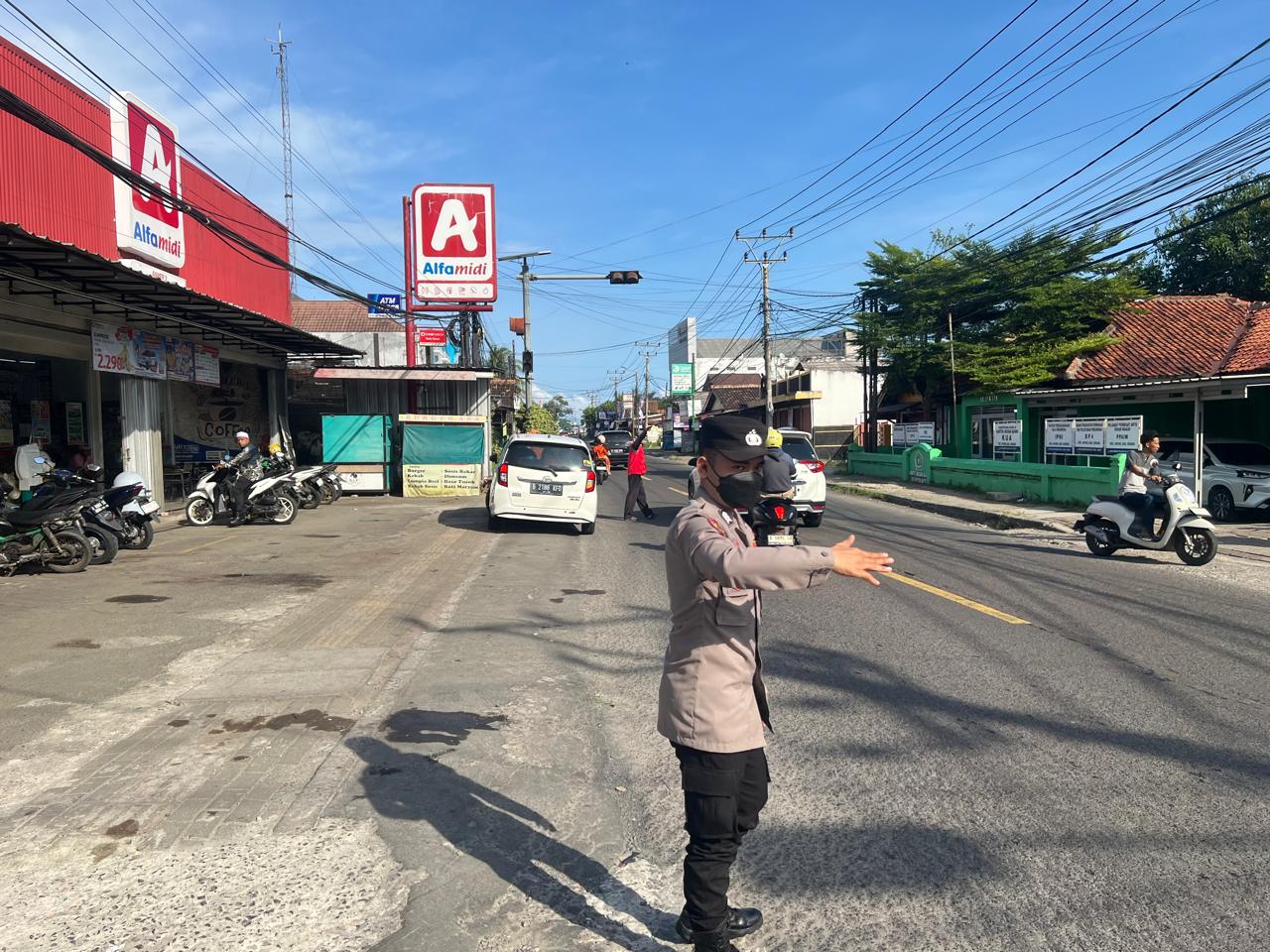 Cilegon, Brigadir Hadi Sudrajat melaksanakan kegiatan pengaturan arus lalu