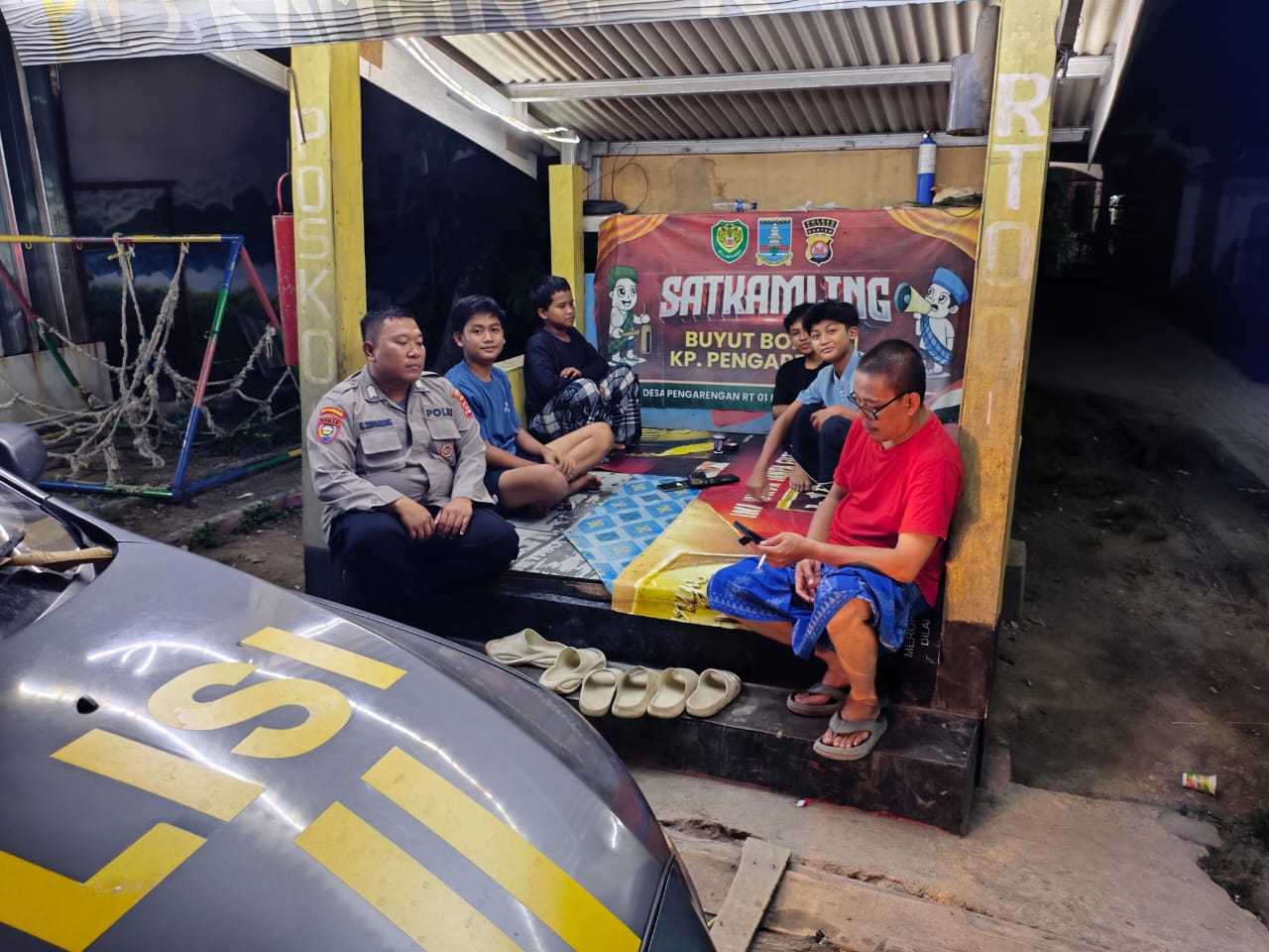 Berikan Motivasi Ke Warga,Bripka Zenal dan Bripka Heru Bhabinkamtibmas Gerebek Pos Ronda berikan imbauan Kamtibmas