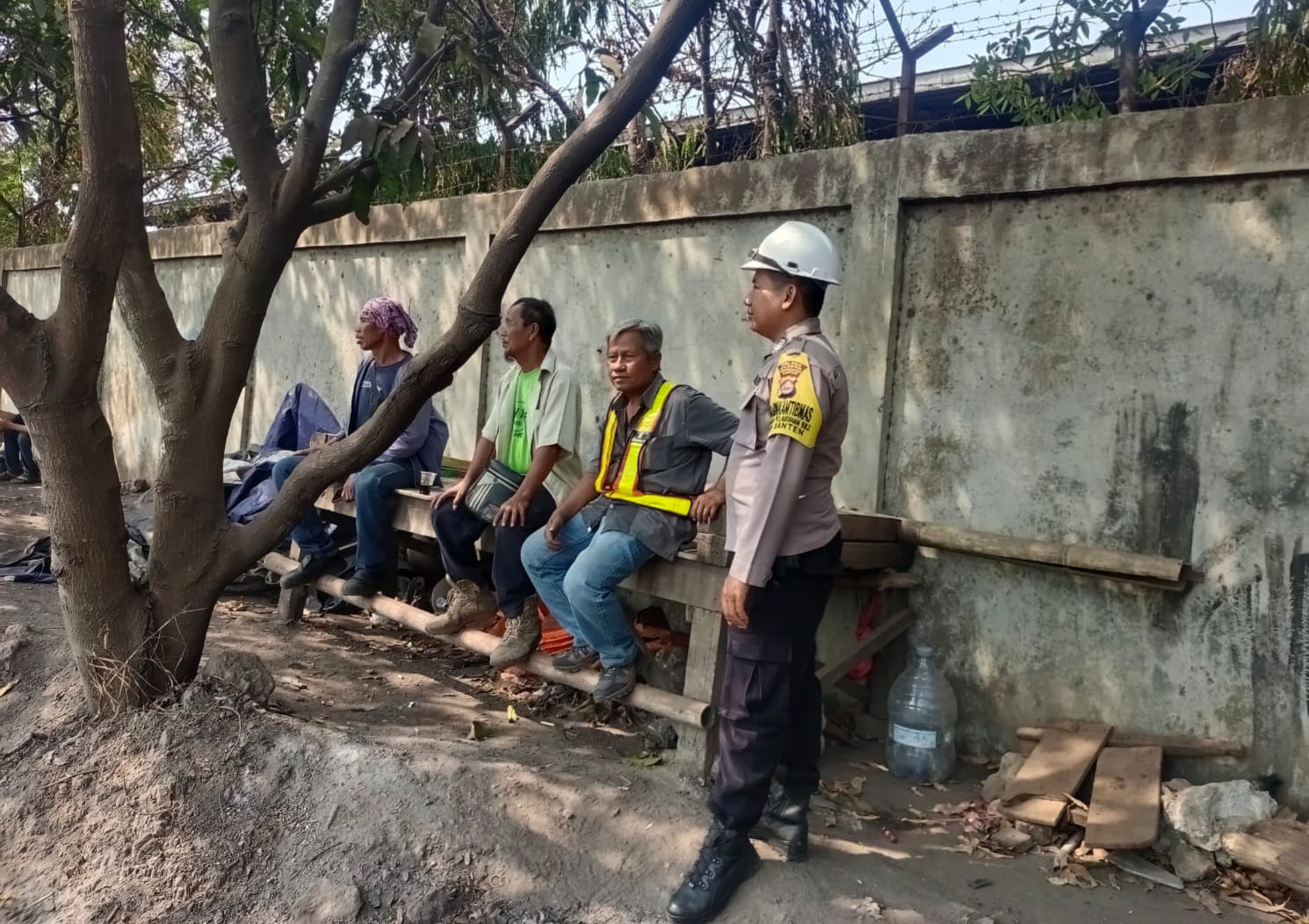 Jalin Silaturahmi, Bhabinkamtibmas Pelabuhan Polsek KSKP Banten berbincang ke Buruh Pelabuhan