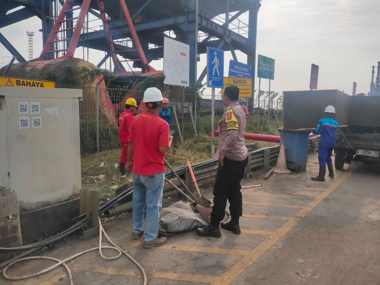 Jalin Silaturahmi, Personil Bhabinkamtibmas Pelabuhan Polsek KP Banten Berbincang dengan Buruh Pelabuhan