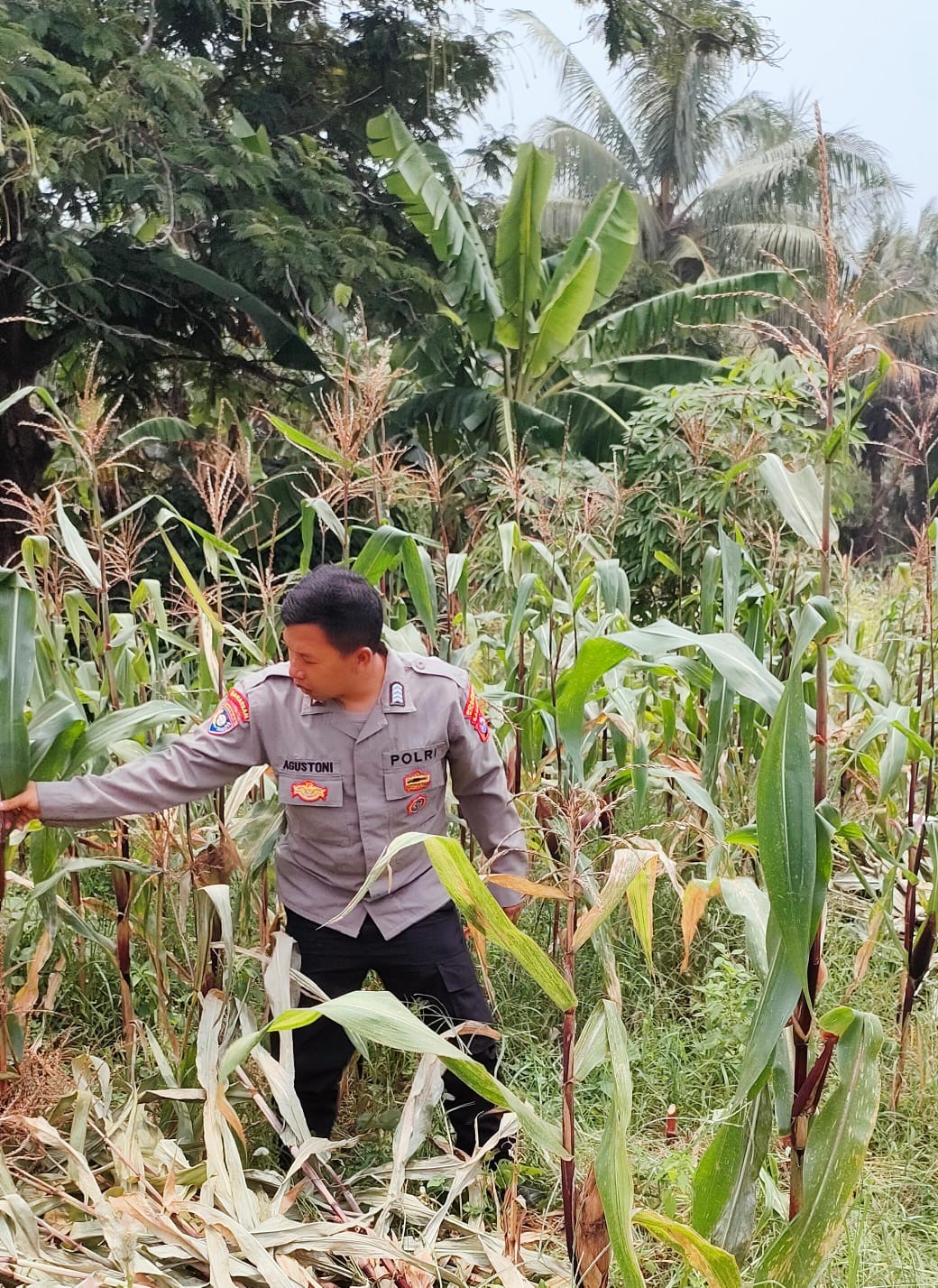 -POLRES CILEGON–Polda Banten. Bhabinkamtibmas JL. Pellet Kompleks KS Kelurahan Kotabumi Kecamatan Purwakarta Kota Cilegon, Bripka Agustoni, melakukan pendampingan dan pemeriksaan langsung tanaman jagung yang ditanam warga di areal tersebut. Kegiatan ini bertujuan untuk memantau kondisi tanaman serta memberikan dukungan kepada petani warga dalam upaya meningkatkan hasil panen.Rabu.(03-12-2025).