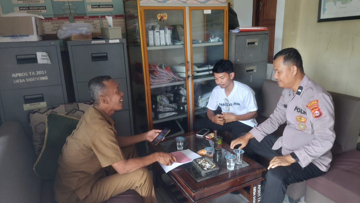 Kapolres Cilegon Polda Banten AKBP Dr. Martua Raja Taripar Laut Silitonga melalui Kapolsek Mancak  IPTU KHAIRUL Dan  Beserta Anggota Bhabinkamtibmas AIPDA EKO GUNAWAN SUPRIYADI. Melaksanakan giat sambang dan silatutahmi dengan staf desa sigedong  dalam Rangka pelaksanaan giat program *Polres Cilegon Tranding* dan *Quick Wins Presisi* Di  Polsek Mancak Sekaligus menghadirkan Polisi di tengah-tengah masyarakat.