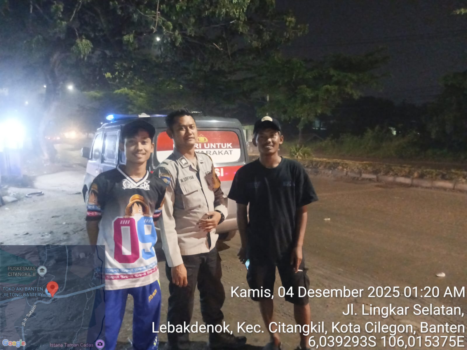 Cilegon - Personil Polsek Ciwandan Polres Cilegon Polda Banten memberikan himbauan kamtibmas dan motivasi kepada anak-anak Remaja Yang sedang Nongkrong Dipinggir Jalan Lingkungan Binaan, Kamis (04/12/2025).