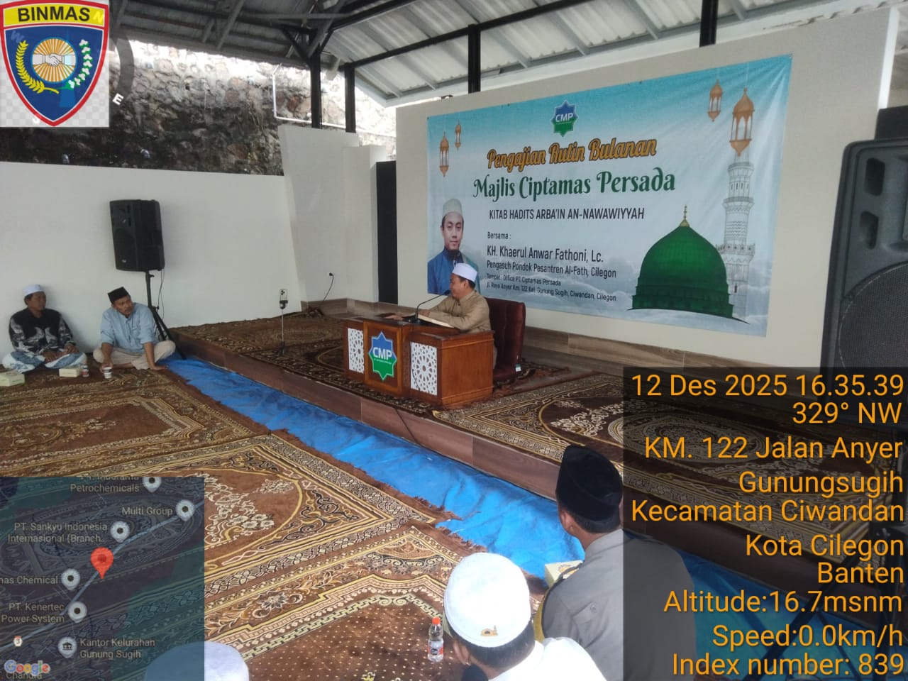 Cilegon - Bhabinkamtibmas Polsek Ciwandan Polres Cilegon Polda Banten menghadiri kegiatan Doa Bersama dan Dilanjutkan Pengajian Rutin dilingkungan Kelurahan Gunung Sugih Kecamatan Ciwandan Kota Cilegon, Sabtu (13/12/2025).