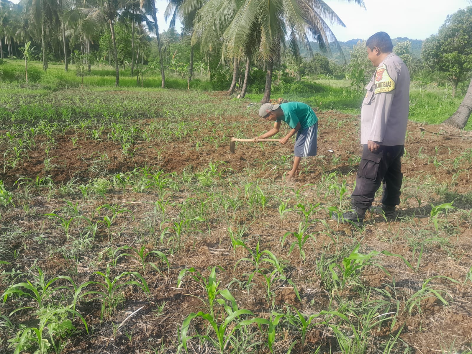 PERSONIL BHABINKAMTIBMAS POLSEK PURWAKARTA LAKUKAN PENDAMPINGAN PETANI JAGUNG DI KEBUN