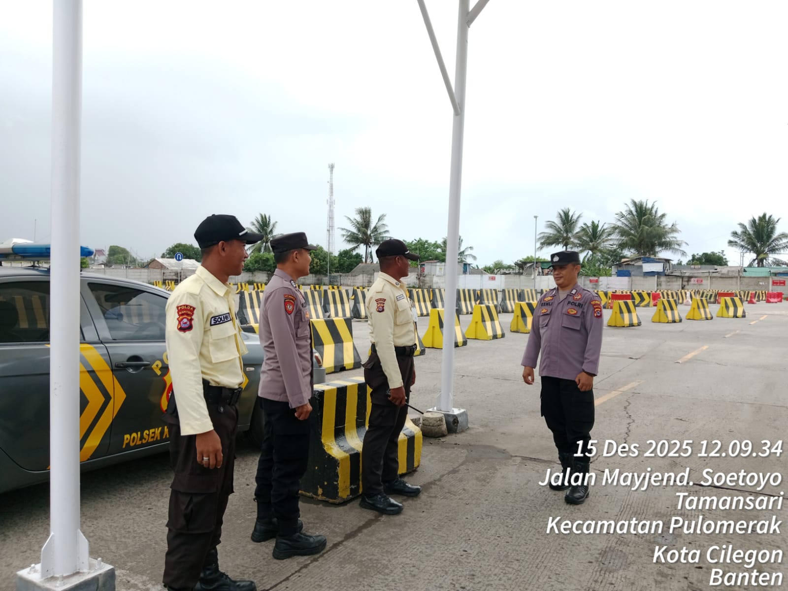 Cilegon - Personel Polsek Kskp Merak Polres Cilegon Polda Banten melaksanakan sambang dan patroli kawasan pelabuhan merak dalam rangka menjaga Harkamtibmas di Kawasan Pelabuhan Merak, Senin (15/12/2025).
