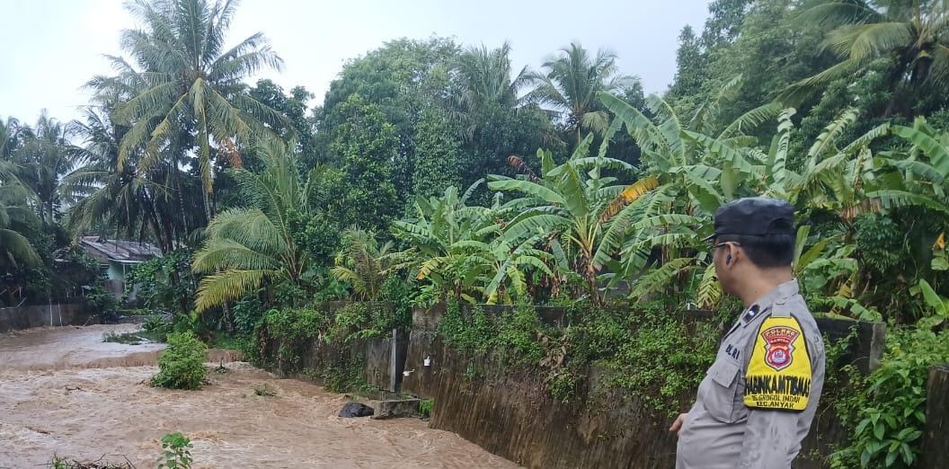 Dalam Siaga Bencana Anggota Polsek Anyar Kegiatan Patroli Dan Pantau Debit Air Wilayah Pasca Hujan
