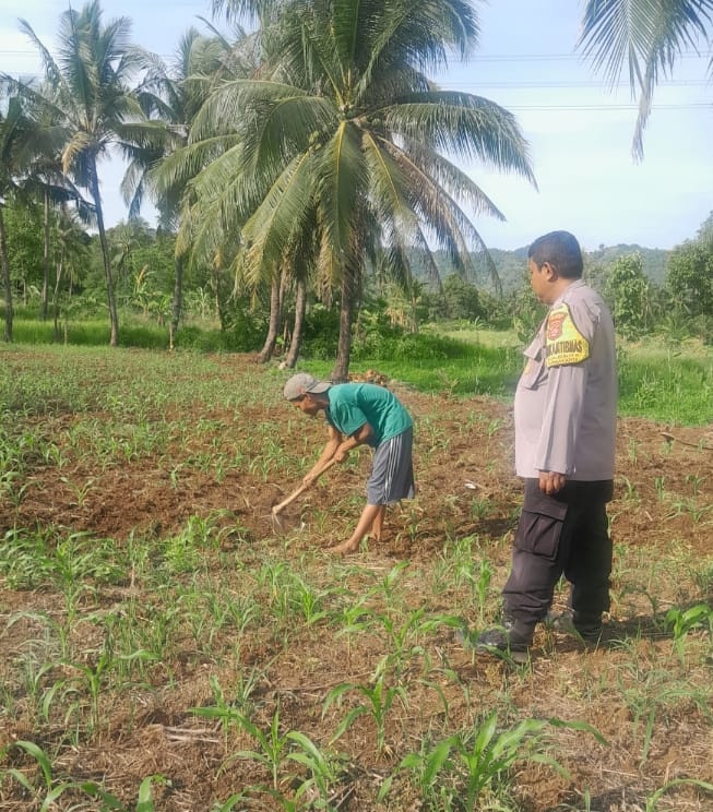 GIAT PERSONIL BHABINKAMTIBMAS MONITORING PERTUMBUHAN TANAMAN JAGUNG BERSAMA PETANI LOKAL DI WILAYAH KUBANG LAMPIT