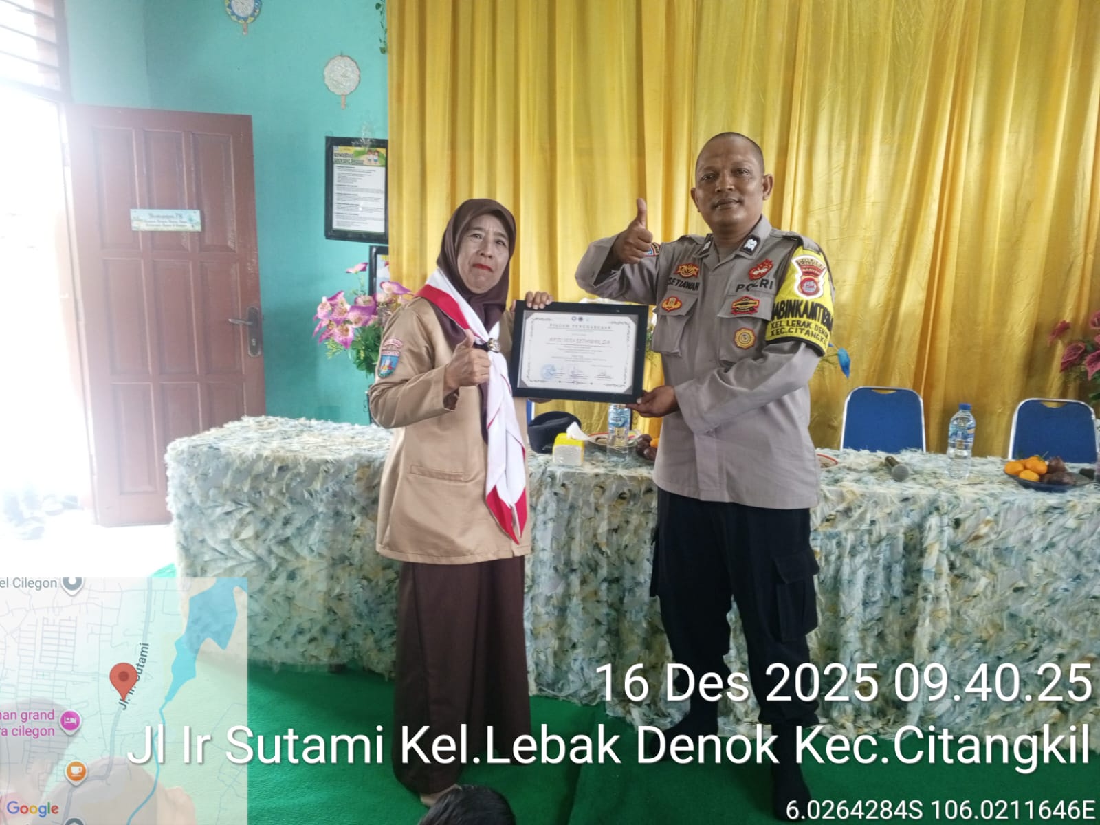 Cilegon - Bhabinkamtibmas Kelurahan Lebak Denok Polsek Ciwandan Polres Cilegon Polda Banten AIPTU Yudi Setiawan melakukan silaturahmi ke SDN Kubles, Rabu (17/12/2025).