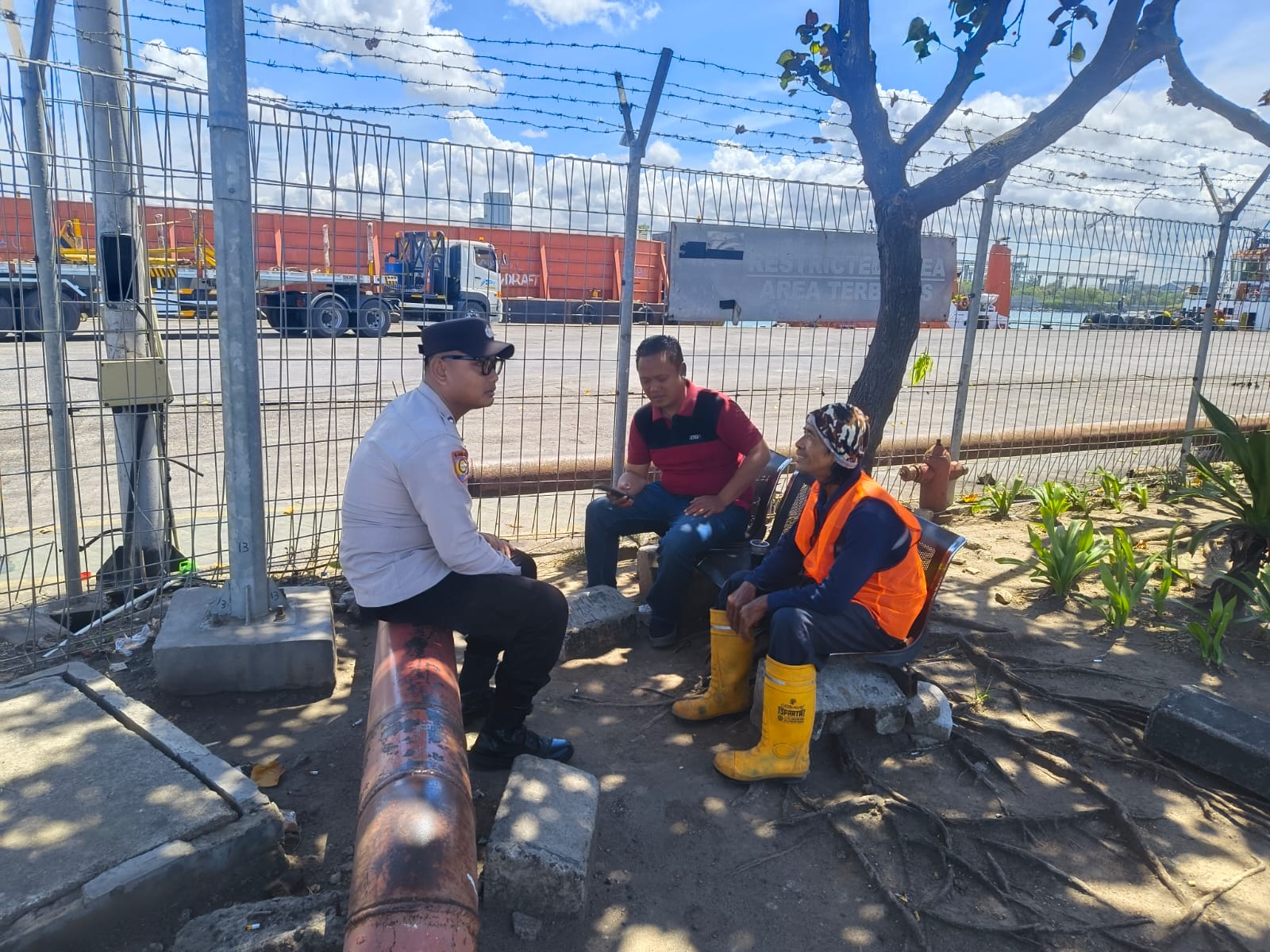 Jalin Silaturahmi, Bhabinkamtibmas Pelabuhan Polsek KP Banten Berbincang ke Buruh Pelabuhan