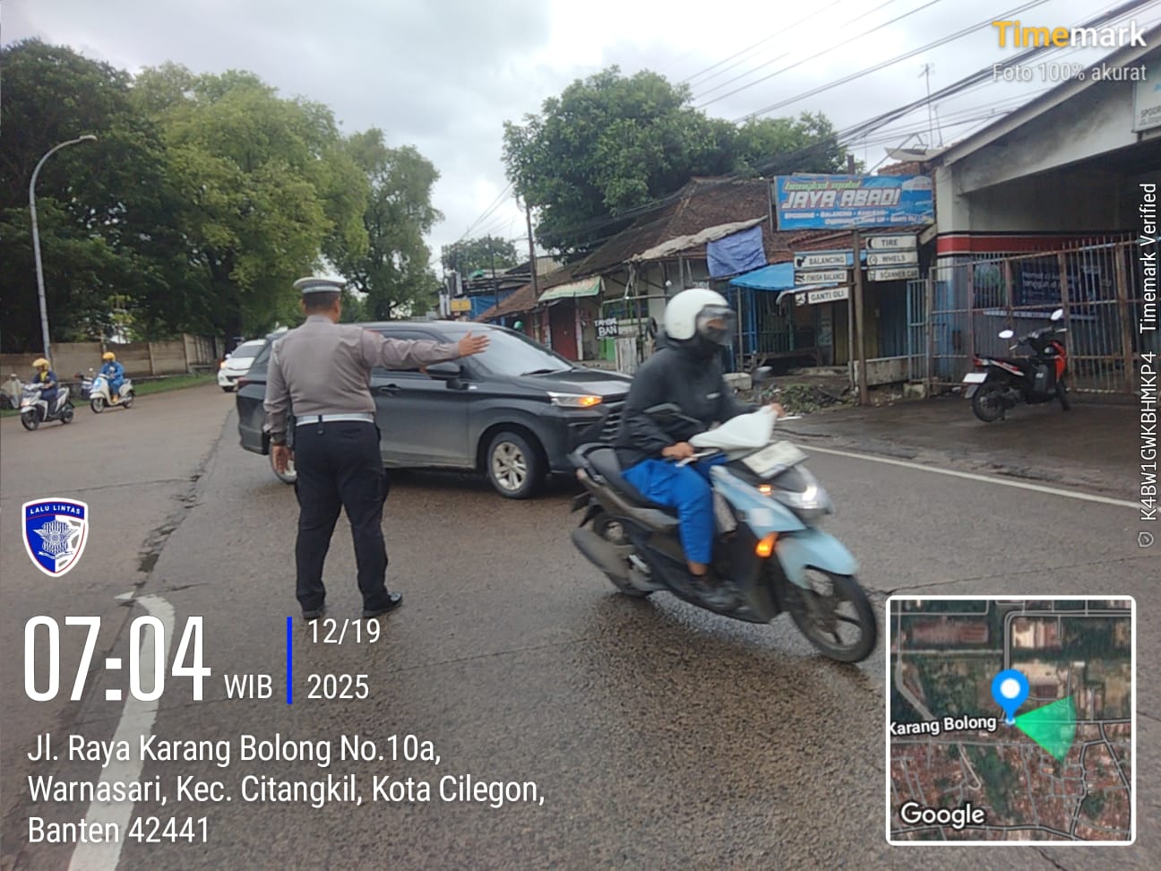 Cilegon - Dalam Mewujudkan Aksi Nyata Pelayanan Kepada Masyarakat,Personil Polsek Ciwandan Polres Cilegon Polda Banten Laksanakan Strong Poin Pengaturan Lalu-lintas, Jum'at  (19/12/2025).
