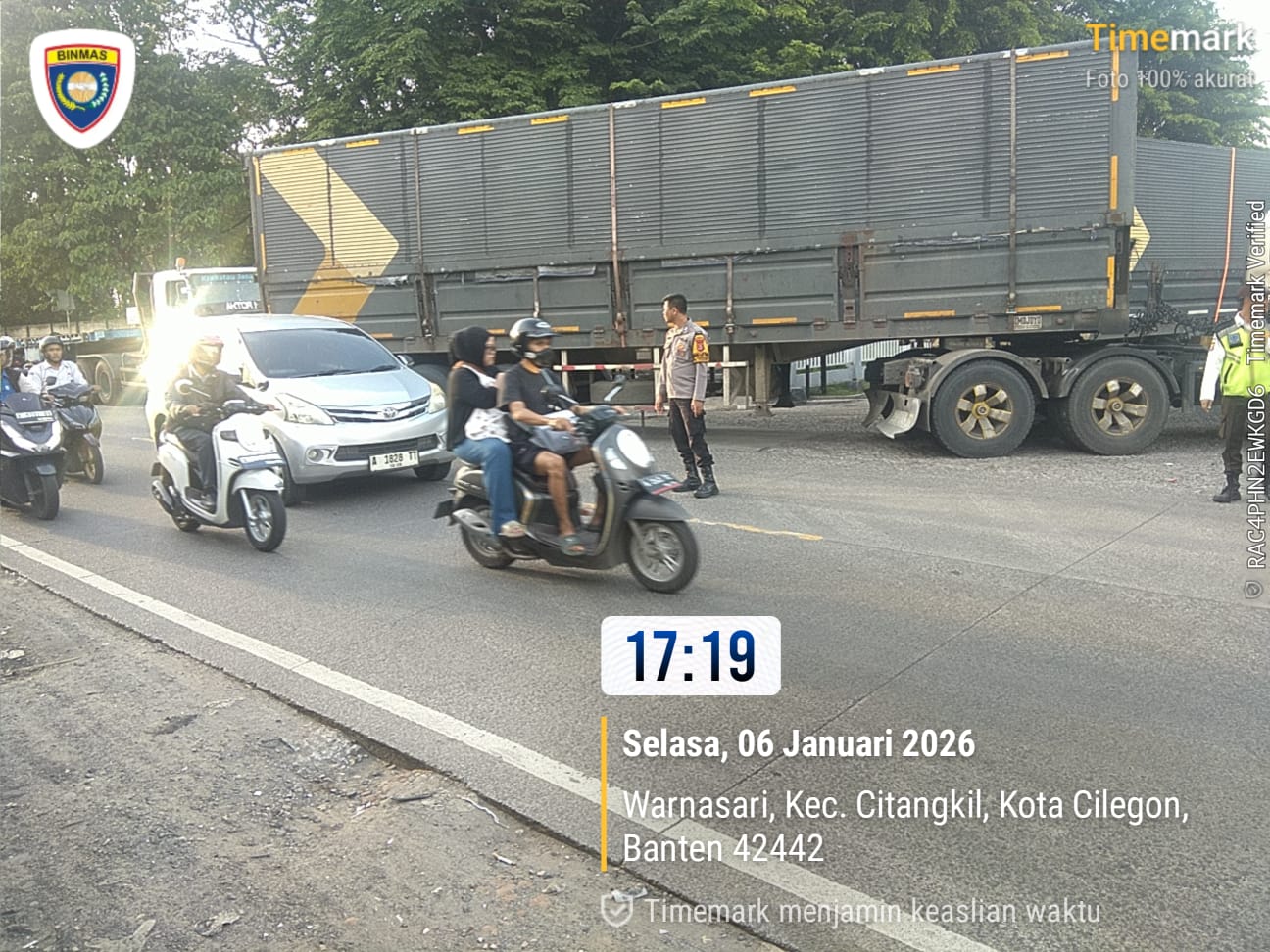 Cilegon – Berikan Pelayanan Kepada Masyarakat Personil Polsek Ciwandan Polres Cilegon Polda Banten melaksanakan pengaturan di titik kepadatan Arus Lalu-lintas Yang Ada Di daerah Hukum Polsek Ciwandan, Rabu (07/01/2026).