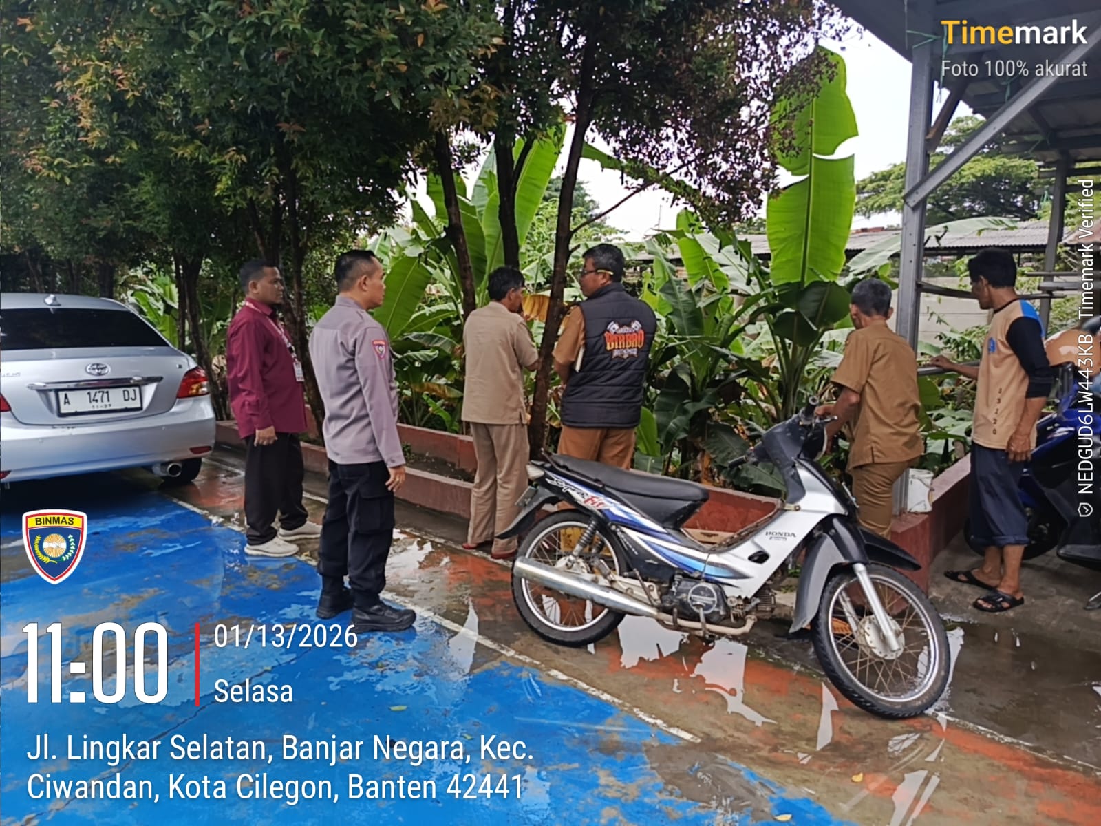 Cilegon - Aiptu Jamaludin Bhabinkamtibmas Kelurahan Banjarnegara, menghadiri musyawarah dengan pihak PU Kota Cilegon di SMA Al-Khairiyah 4 Cilegon. Musyawarah ini membahas genangan air di samping sekolah yang menyebabkan air masuk ke ruang kelas pasca hujan. Selasa (13/01/2026).