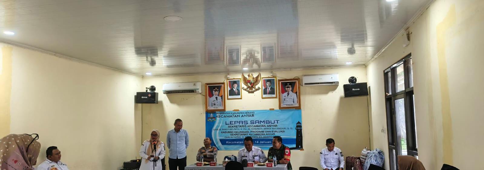 Polsek Anyar Polres Cilegon Polda Banten menghadiri kegiatan pisah sambut Sekretaris Kecamatan (Sekcam) Anyar yang dilaksanakan di Aula Kantor Kecamatan Anyar, Kabupaten Serang, rabu (14/01)