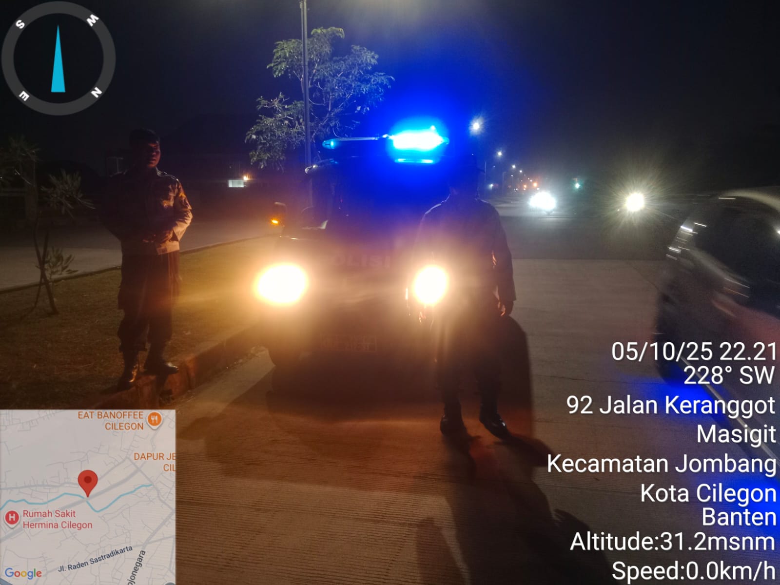 Anggota Polsek Cilegon Blue light patrol antisipasi kejahatan malam hari menjaga kondusifitas di wilayah hukumnya