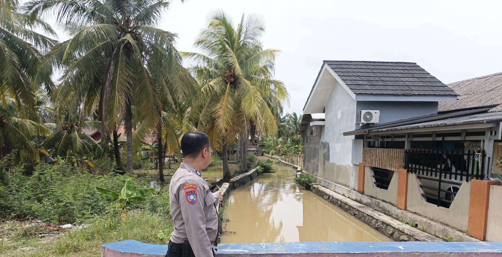 Personel Polsek Anyar Polres Cilegon Polda Banten melaksanakan Patroli kewilayahan mengecek debit air di Sungai pasca Hujan antisipasi banjir di wilayah Kec. Anyar, sabtu (17/01).