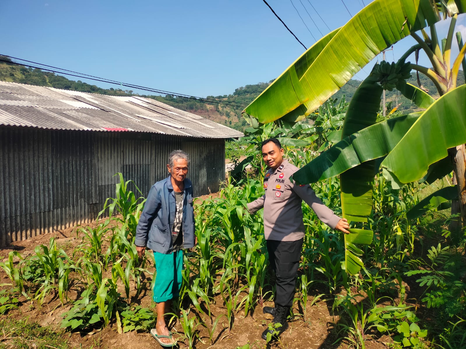 Pantau lahan jagung pok tani sinarjaya kecamatan.puloampel Desa Banyuwangi oleh Bhabinkamtibmas Polsek Puloampel