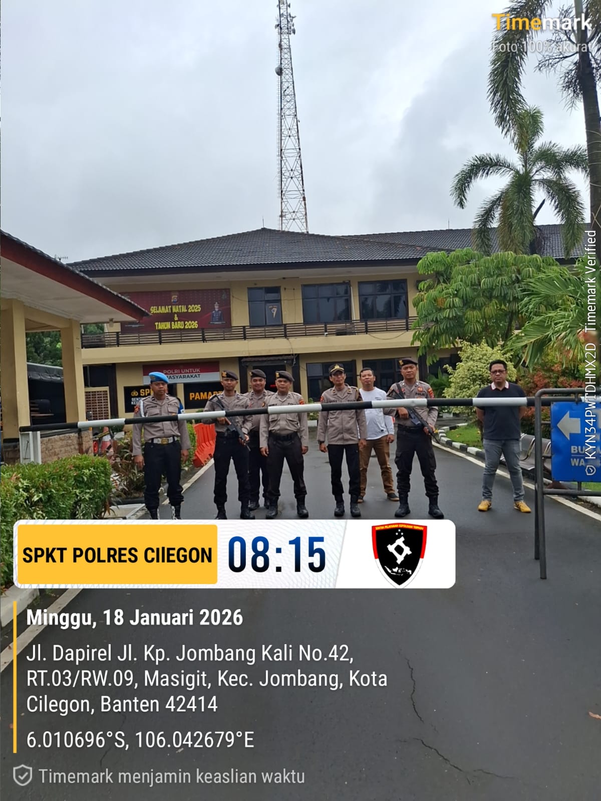Cilegon, personel Satreskrim Polres Cilegon Polda Banten melaksanakan piket di penjagaan pintu masuk Polres Cilegon Polda Banten untuk memastikan mako Polres Cilegon dalam keadaan aman dan nyaman dalam melayani Masyarakat tanpa adanya gangguan kejahatan. Minggu (18/01/2026).