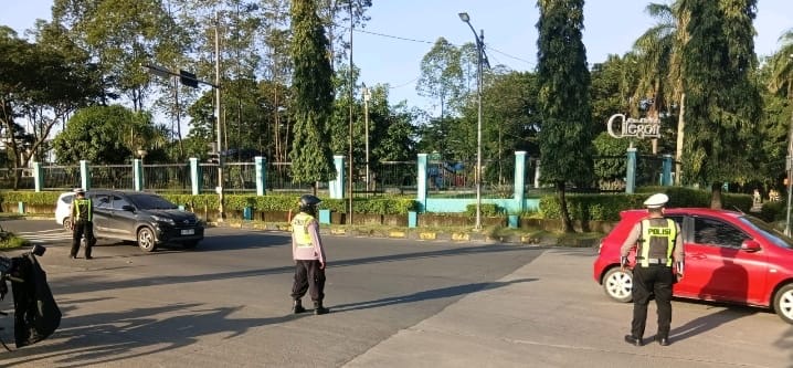 Personel Polsek Purwakarta telah melaksanakan kegiatan pengaturan lalu lintas secara rutin pada pagi hari di beberapa persimpangan strategis