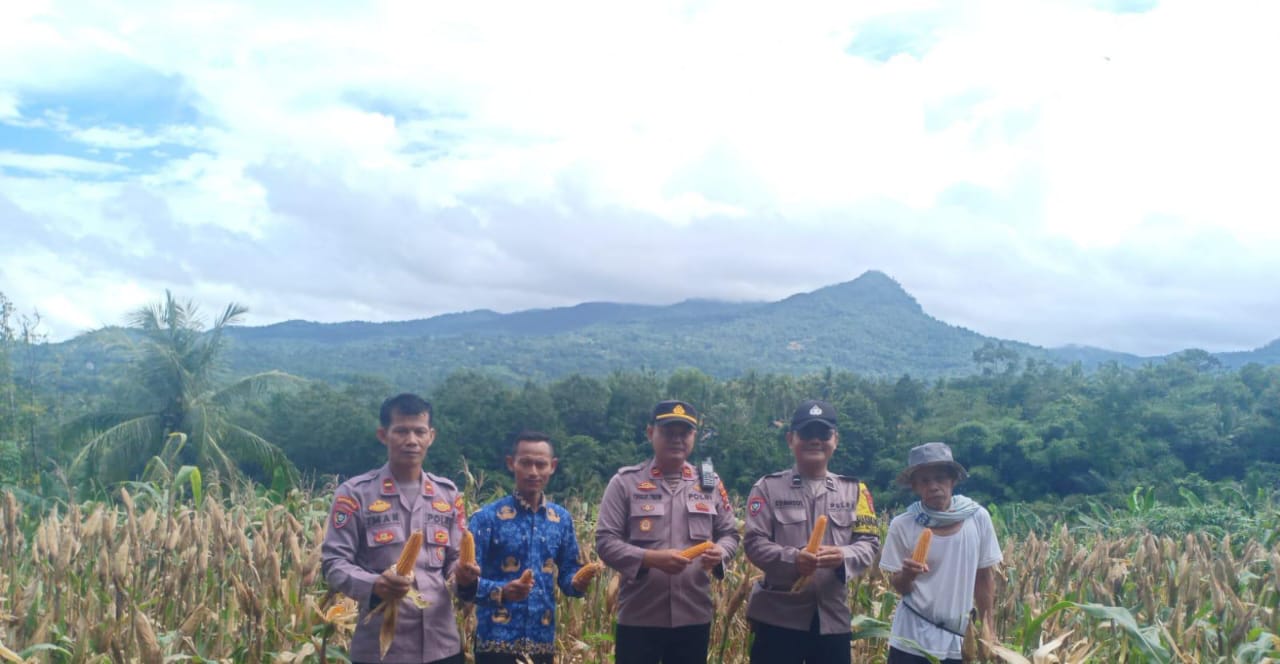 Personil Polsek Anyar Lakukan Pendampingan Panen Jagung Kelompok Tani Desa Kewilayahan
