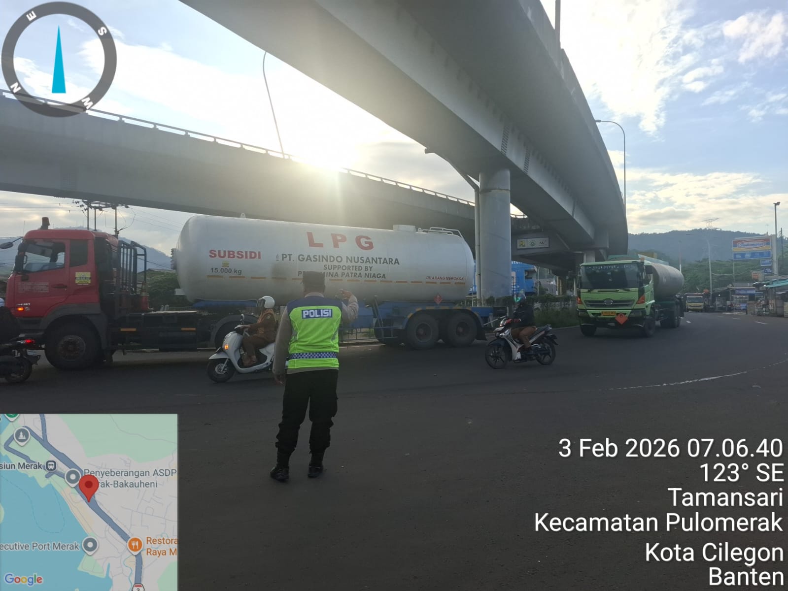 Kapolres Cilegon Polda Banten AKBP Martua Raja Taripar Laut Silitonga melalui Kapolsek Kskp Merak AKP Gusti Almasri P menyampaikan bahwa kegiatan pengaturan antrian ini adalah dalam rangka memberikan pelayanan kepada masyrakat yang akan menyebrang ke Bakauheni atau Sumatra melalui jalur laut dengan menaiki kapal Ferry.