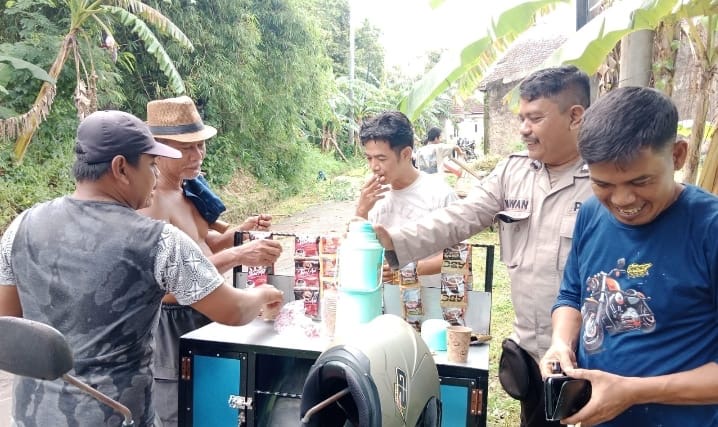 Bhabinkamtibmas Kelurahan Tegalbunder Polsek Purwakarta Polres Cilegon, melaksanakan kegiatan gotong royong bersama masyarakat sekaligus menghadirkan program "Warbinling Warung Kopi Bhabinkamtibmas Keliling"