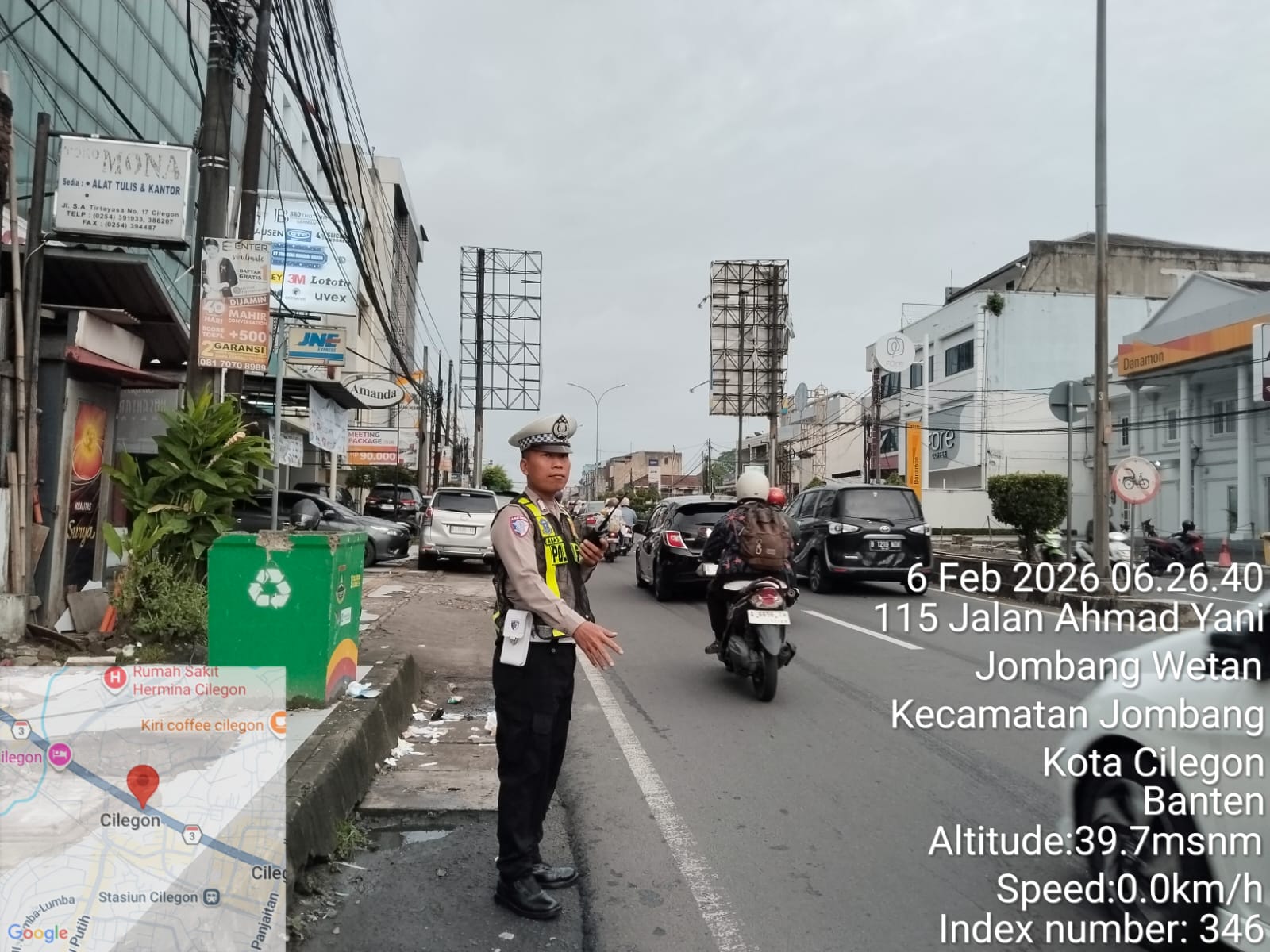 Cilegon – Polres Cilegon Polda Banten laksanakan Kegiatan Strong Point dalam rangka pengaturan arus lalu lintas dan kepadatan kendaraan pada jalur protokol/rawan macet di Darkum Polres Cilegon, Jum’at (06/02/2026).