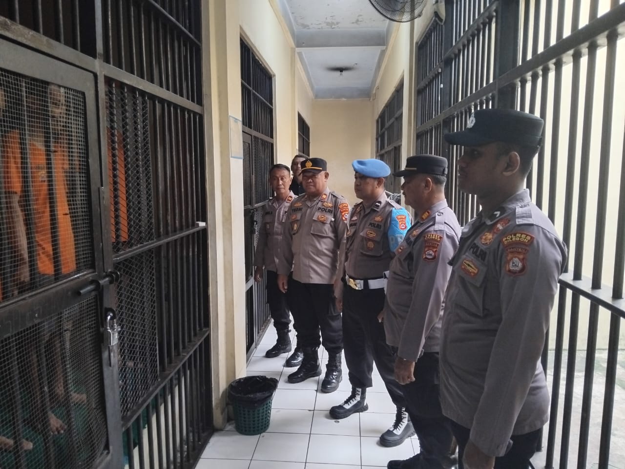 Pelaksanaan pengecekan ruangan tahanan Polres bersama piket Jaga tahanan mengecek secara keseluruhan kondisi ruang tahanan.