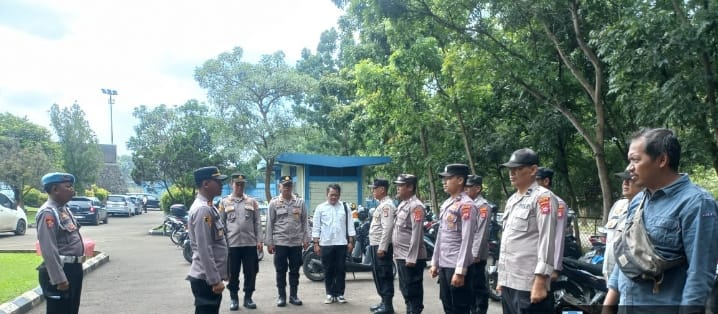 KAPOLSEK PURWAKARTA IPTU SUKANDA PIMPIN APEL PENGAMANAN KEGIATAN BULAN K3 DI STADION KRAKATAU STEEL